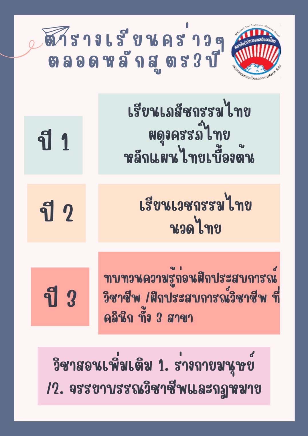 ซึ่งสภาการแพทย์แผนไทยได้รับรองหลักสูตรแล้ว